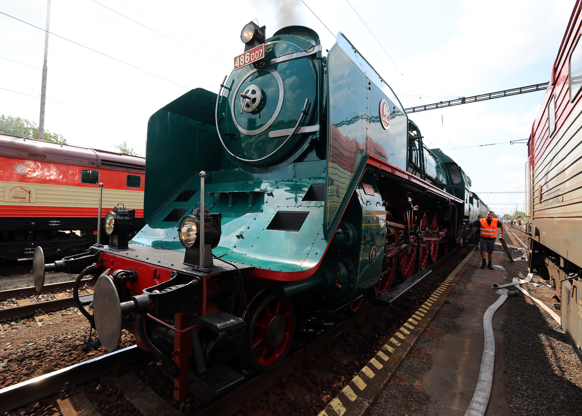 Vlak poháňa parný rušeň, súčasťou súpravy je historický vozeň Aza 80 vyrobený v roku 1930 pre prezidenta Masaryka.
