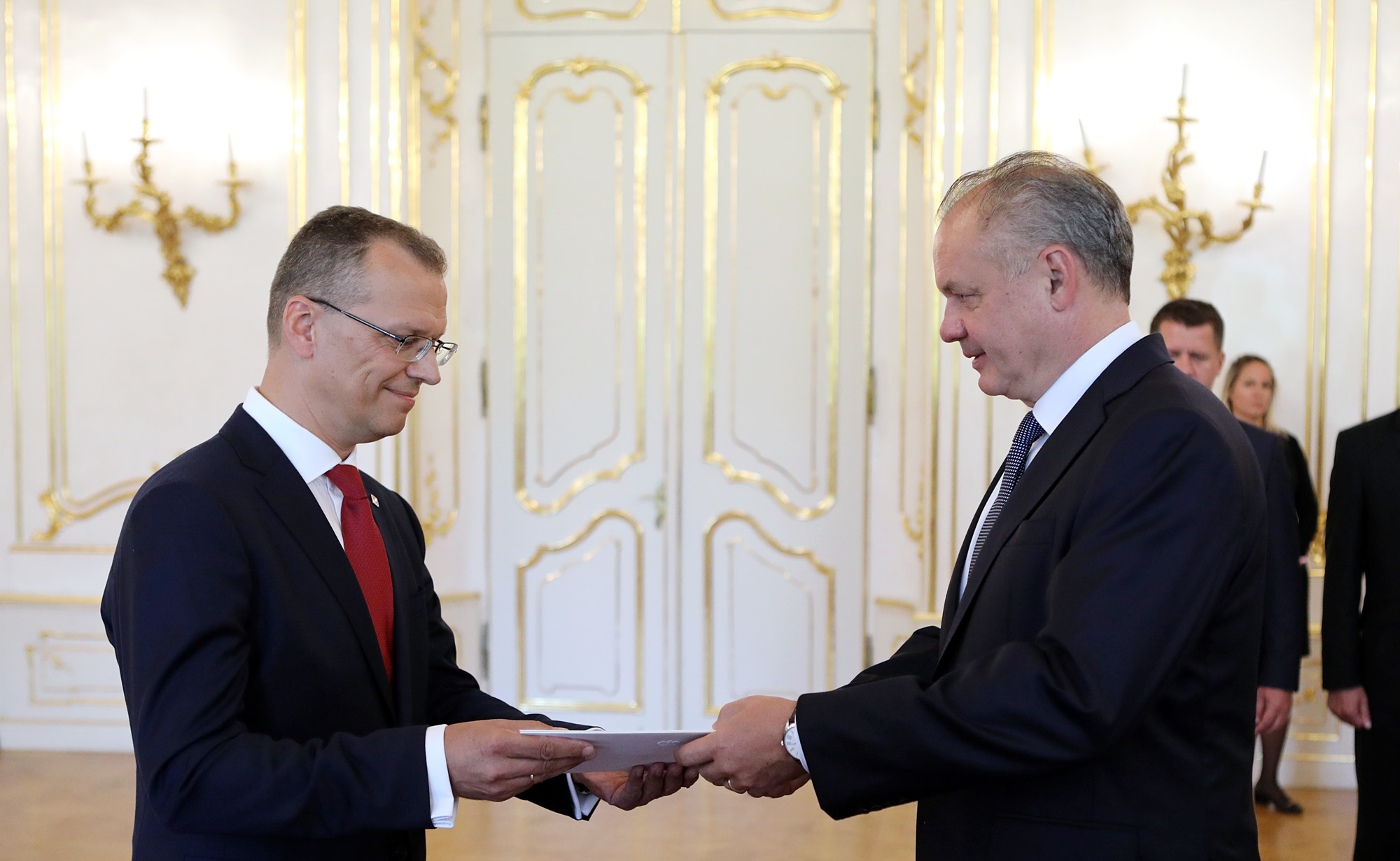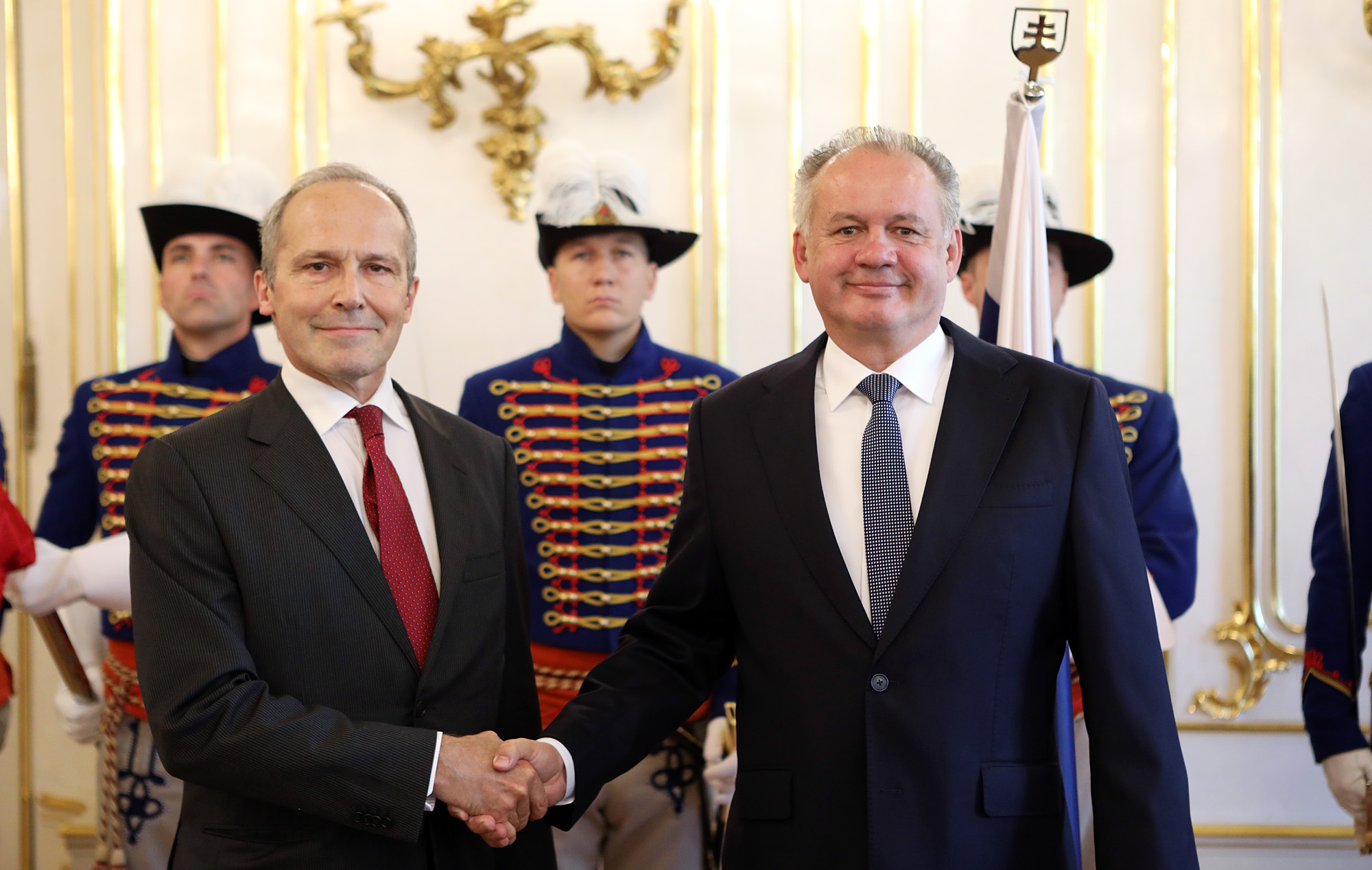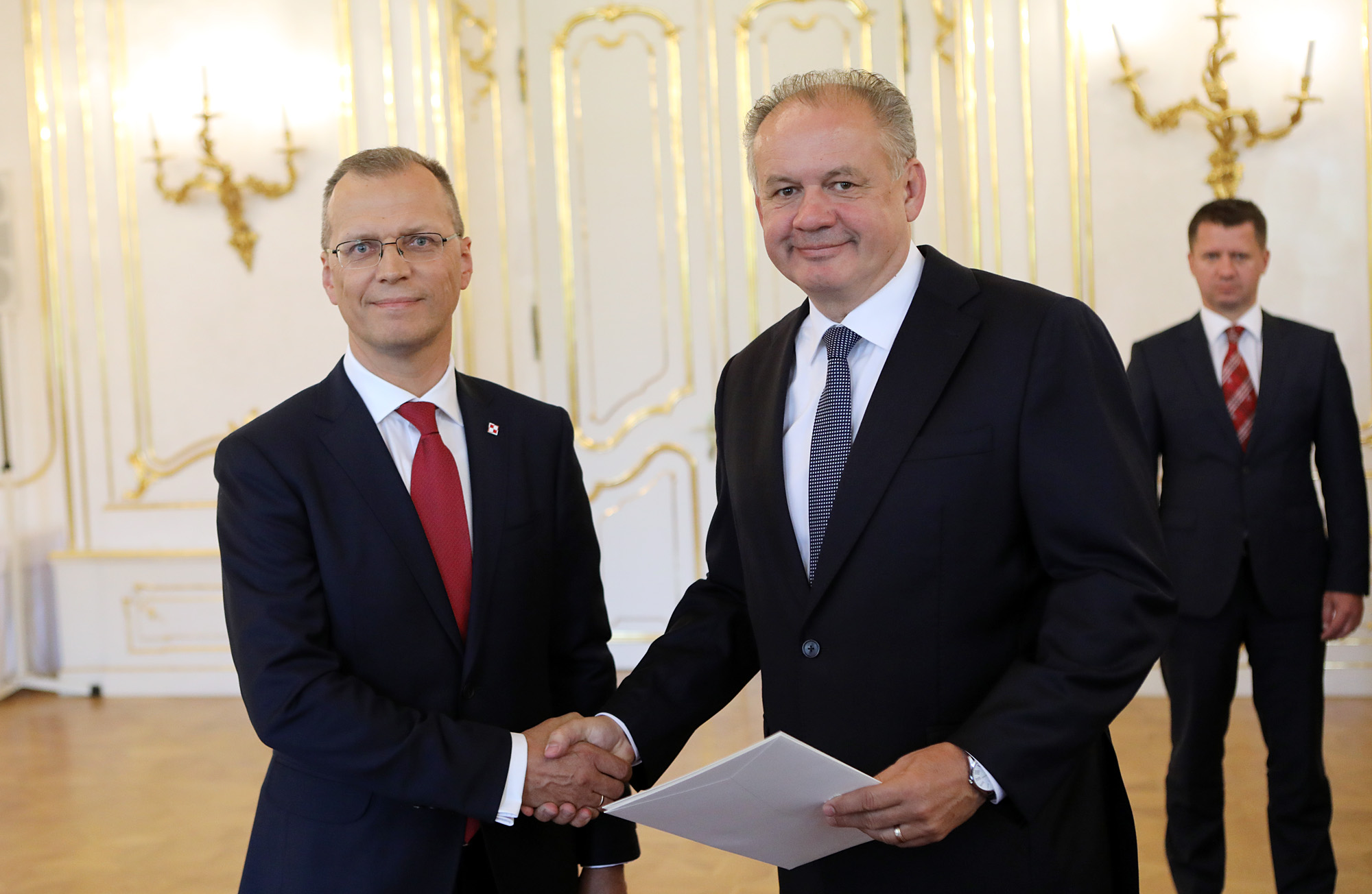 Prezident Andrej Kiska v utorok prijal na nástupnej audiencii veľvyslanca Švajčiarskej konfederácie v SR Alexandera Hoffeta a veľvyslanca Poľskej republiky v SR Krzysztofa Strzałku.