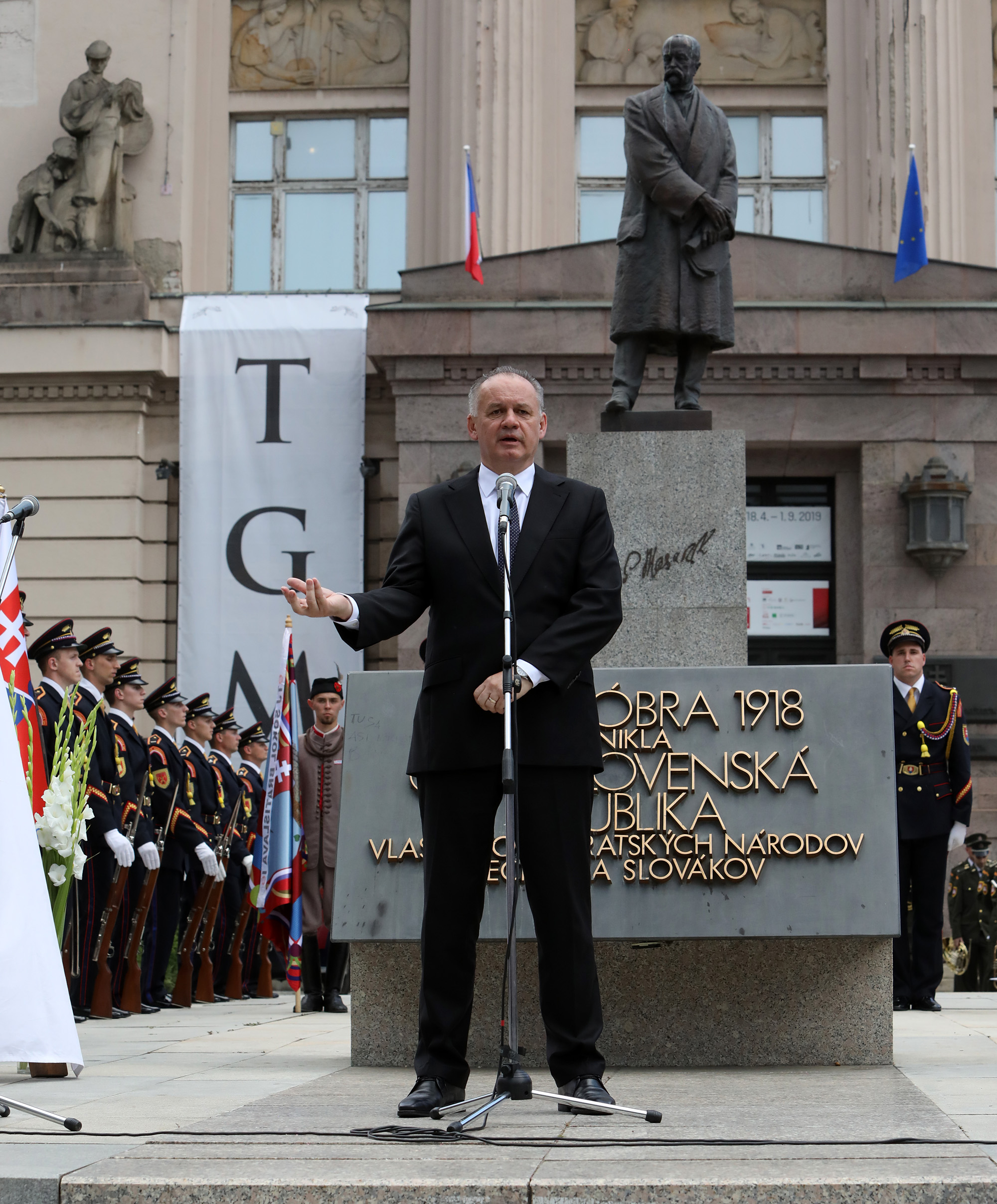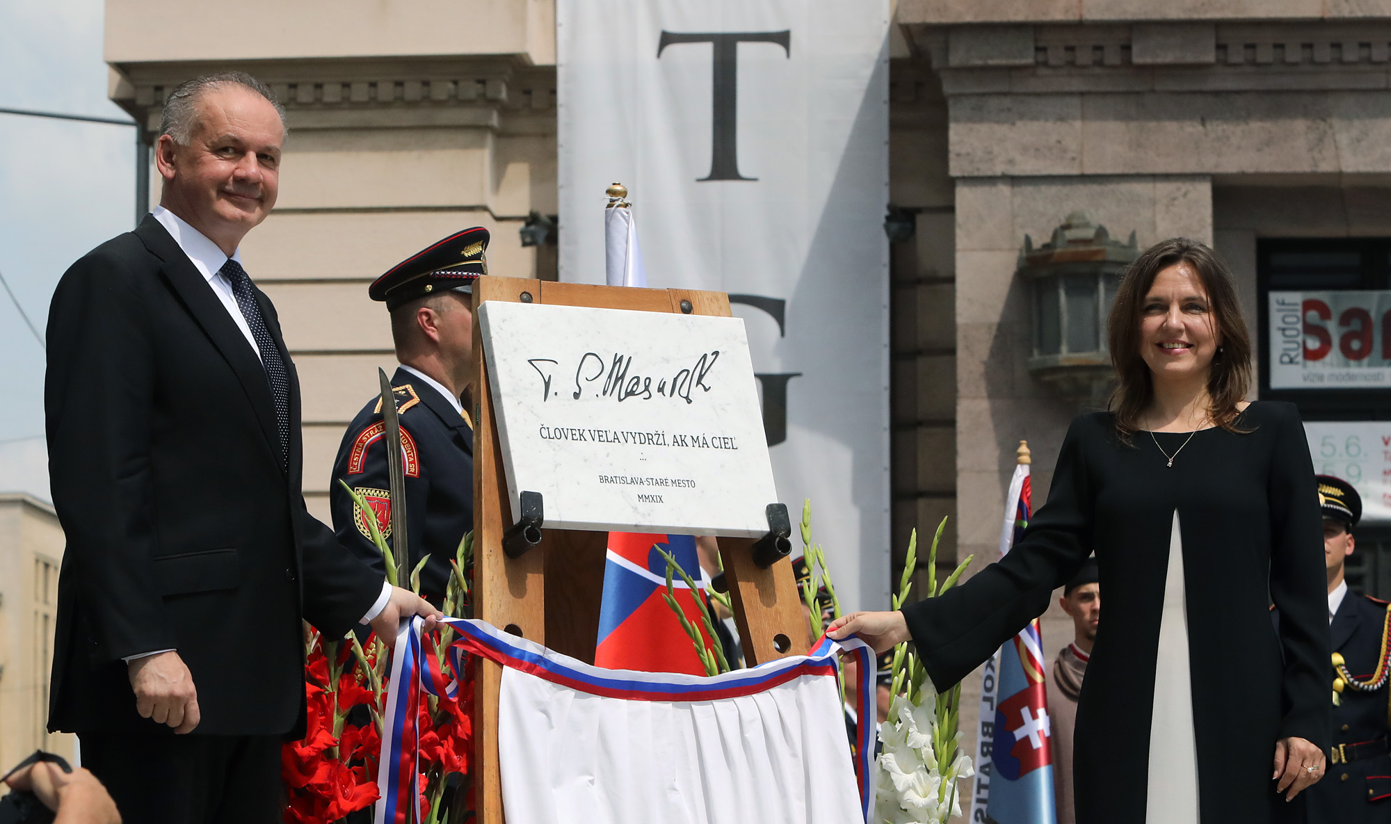 Kiska po kladení vencov k soche Masaryka v príhovore podotkol slovami zakladateľa Československa, že demokraciu už máme, no potrebujeme ešte skutočných demokratov. Myšlienku nazvať priestor pred SNM označil za akt úcty voči tejto osobnosti a výsledok dlhoročného úsilia.