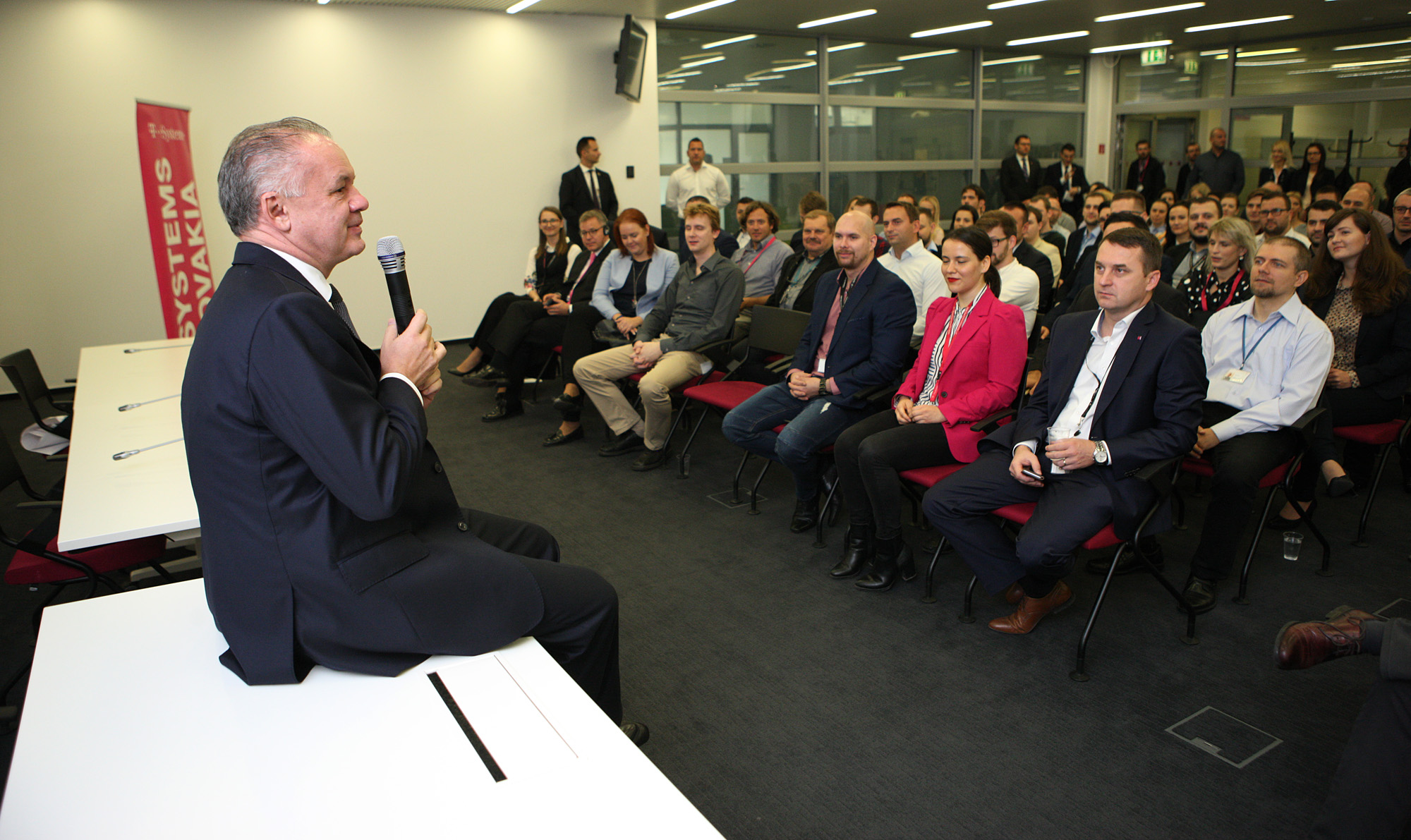 „T-Systems pôsobí v 22 krajinách po celom svete, má viac ako 42.000 zamestnancov. Tu na Slovensku má 4.000 zamestnancov. Keď som sa riaditeľa T-Systems pýtal, ako je spokojný na Slovensku v porovnaní s inými krajinami, tak povedal tú vetu, ktorú ako prezident najradšej počúvam, a to, že na Slovensku sú úžasní ľudia a táto pobočka tu na Slovensku patrí medzi najúspešnejšie z celého sveta,“ povedal Andrej Kiska.