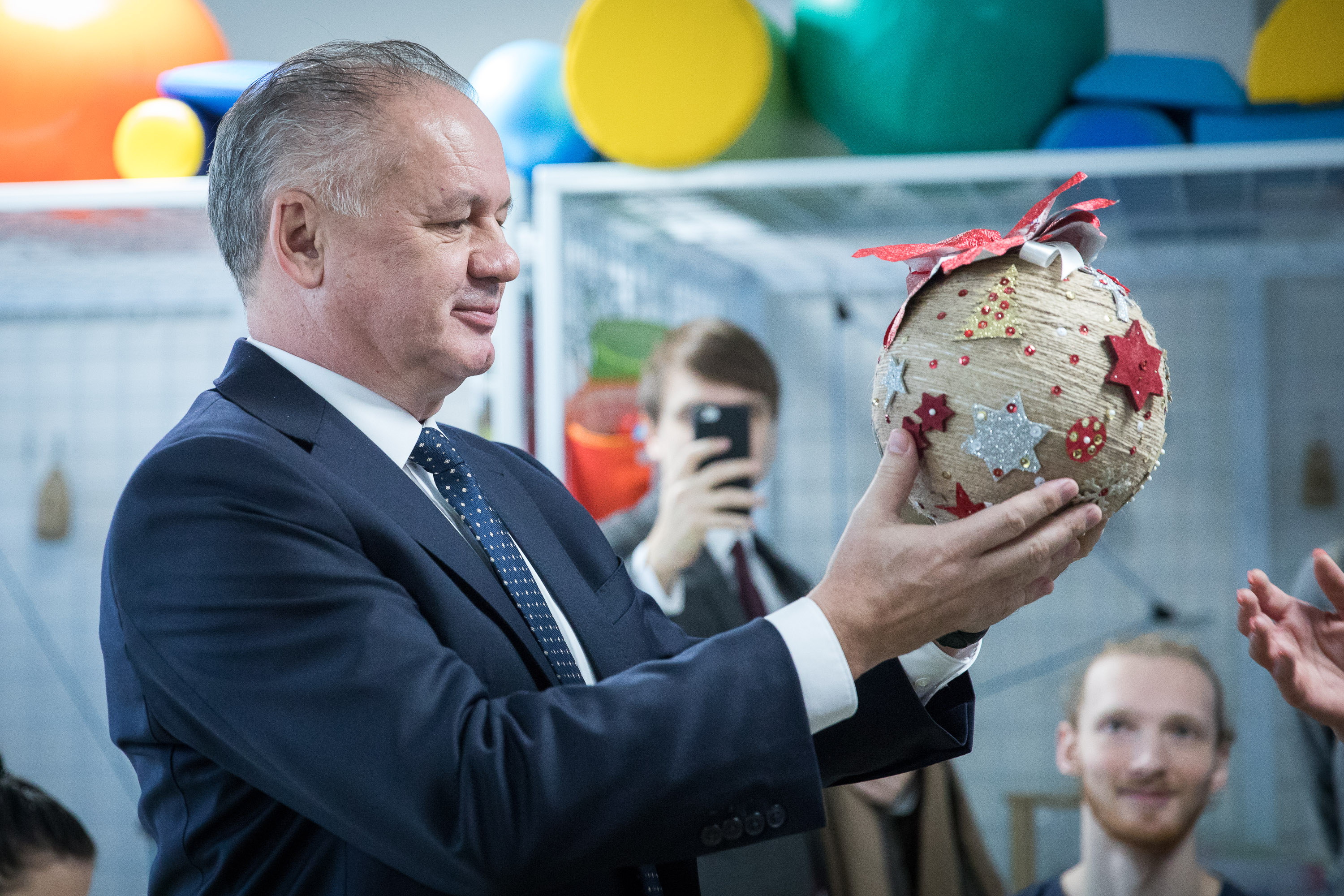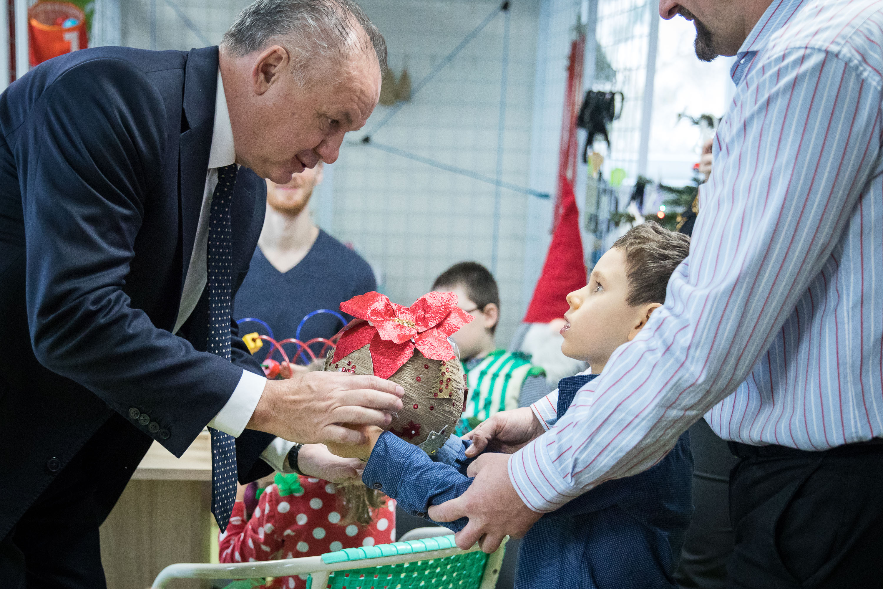 Prezident od detí a rodičov prevzal dar – vianočnú guľu, ktorú spolu s tromi ďalšími vianočnými guľami od ľudí zo znevýhodnených skupín daruje na audiencii u pápeža Františka vo Vatikáne 14. decembra.