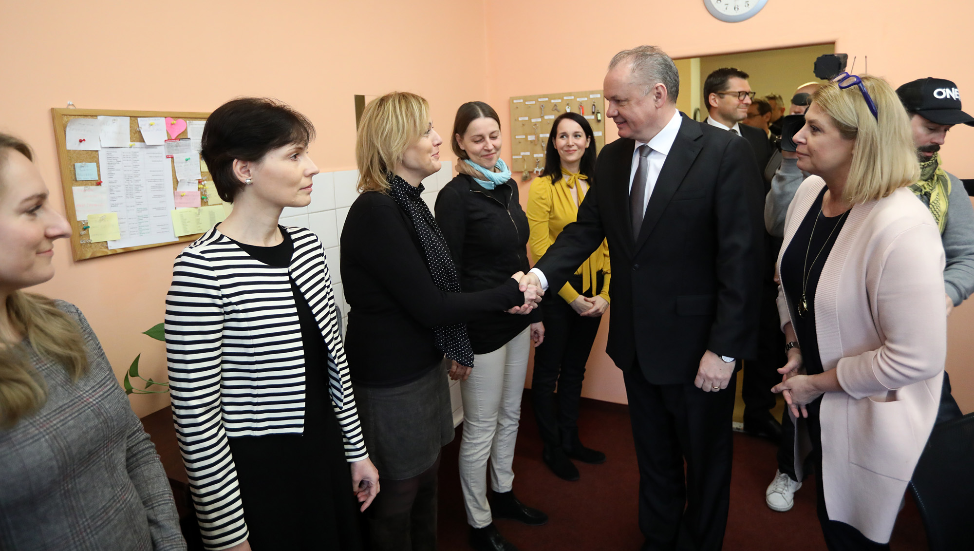 Prezident Andrej Kiska navštívil vo štvrtok pri príležitosti Medzinárodného dňa žien krízové centrum Brána do života v Bratislave. Rokoval s jeho vedením a stretol sa aj s klientkami.