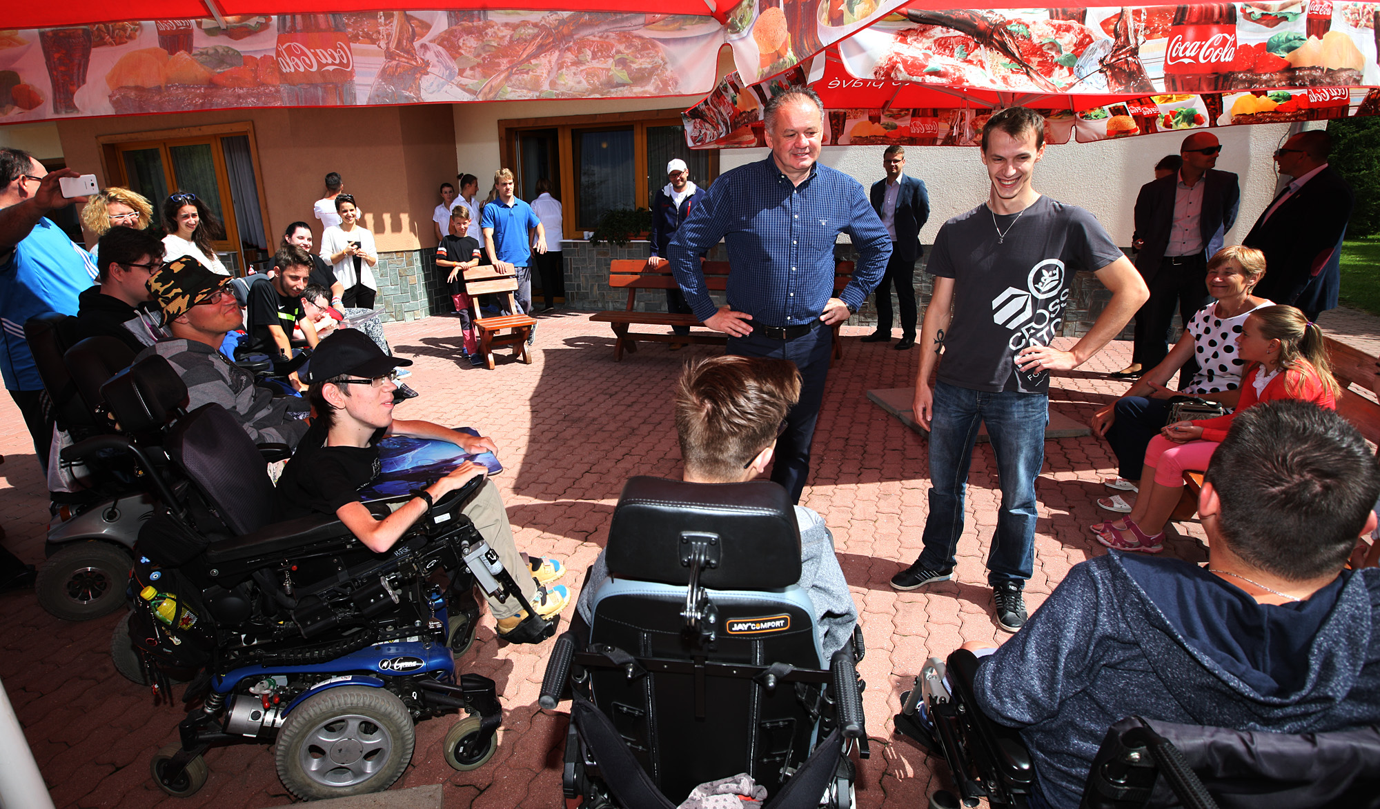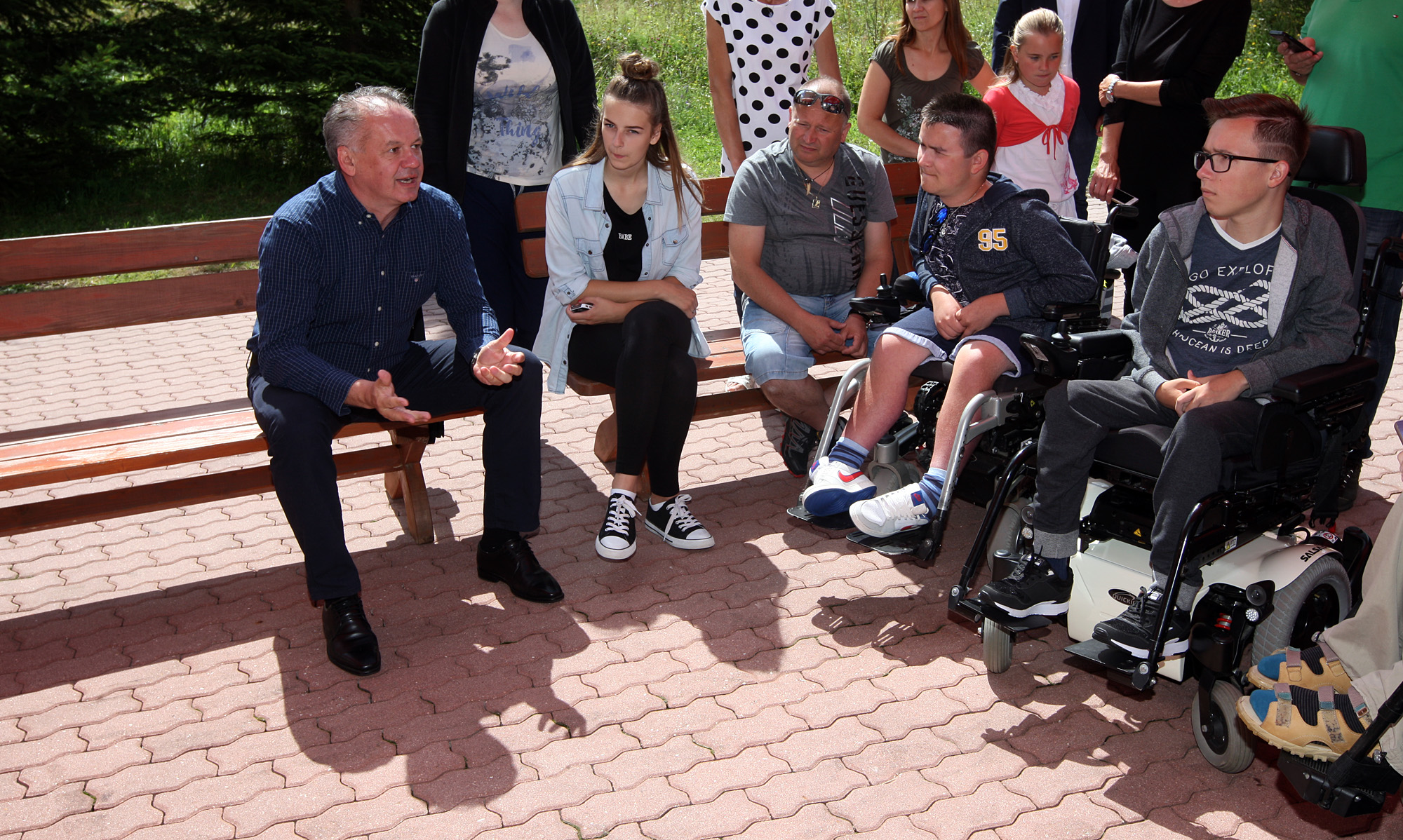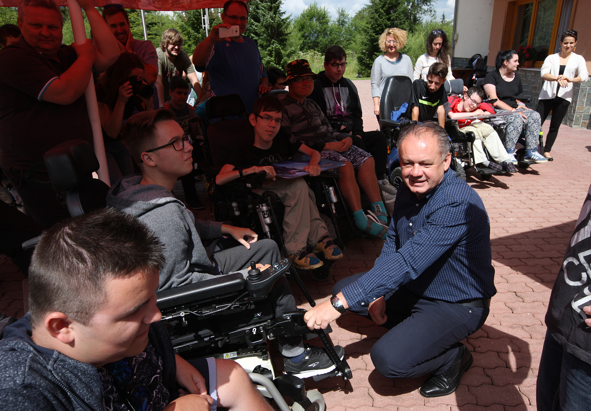 Prezident Andrej Kiska navštívil vo štvrtok v Zuberci letný tábor pre mládež so svalovou dystrofiou. S deťmi si pozrel ich krátke vtipné filmové projekty. S rodičmi a osobnými asistentmi diskutoval o tom, akým ťažkostiam musia svaloví dystrofici čeliť.
