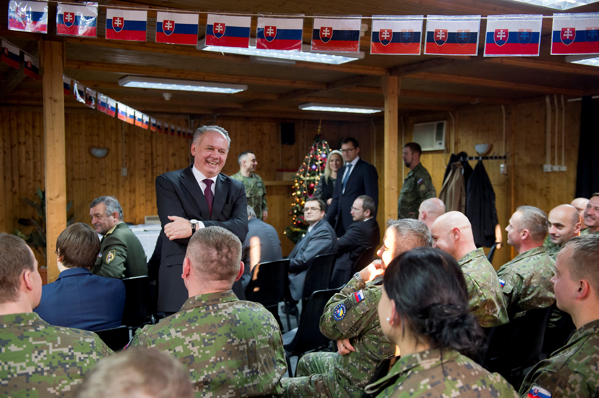 „O pár dní sú tu najkrajšie sviatky roka – Vianoce. Drvivá väčšina z nás bude v kruhu svojich najbližších, ale sú povolania, kde ľudia túto možnosť mať nemôžu,“ povedal prezident po stretnutí so slovenskými vojakmi pôsobiacimi v rámci mierovej misie. „Tu si ľudia uvedomujú, čo slovo mier znamená, že doba nie je jednoduchá a že mier si treba strážiť.“
