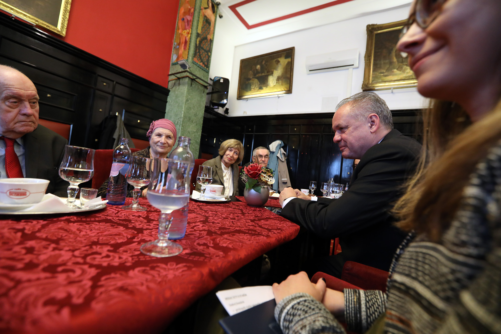 Prezident Andrej Kiska v pondelok diskutoval so seniormi z rôznych oblastí spoločenského života, ktorých pozval do jednej z bratislavských kaviarní pri pri príležitosti mesiaca úcty k starším.