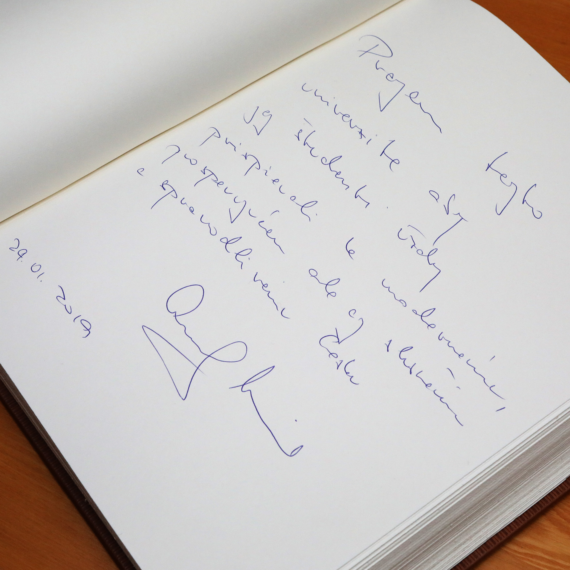 Som hrdý na to, že pred mnohými takýmito ľuďmi tu, v tejto aule môžem stáť. Som hrdý na to, že môžem stáť na pôde univerzity, ktorej hodnoty a práca dávajú záruku, že rady tých, ktorí budú prispievať k rozvoju oboch našich krajín v modernom, demokratickom a slobodnom duchu, sa budú rozrastať.